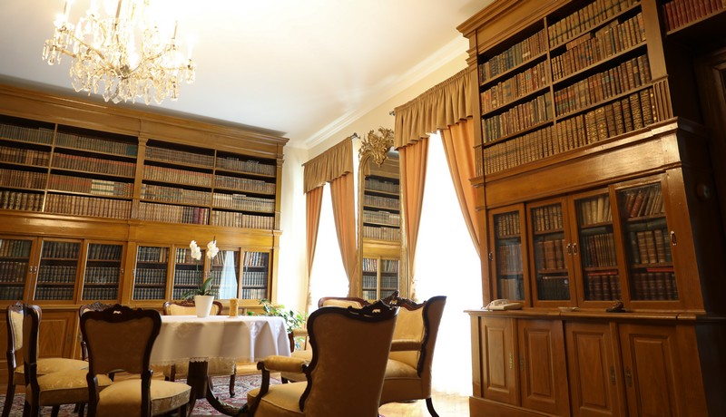 Tovább haladva a püspöki könyvtárba jutottunk, ahol mintegy ötezer kötet található, elsősorban történelmi, földrajzi, kultúrtörténeti, teológiai, jogi és szépirodalomi könyvek. Az egyik legértékesebb az 1828 és 1833 között a tübingeni Cotta Kiadónál megjelent, Goethe összes művét tartalmazó 55 kötetes sorozat.