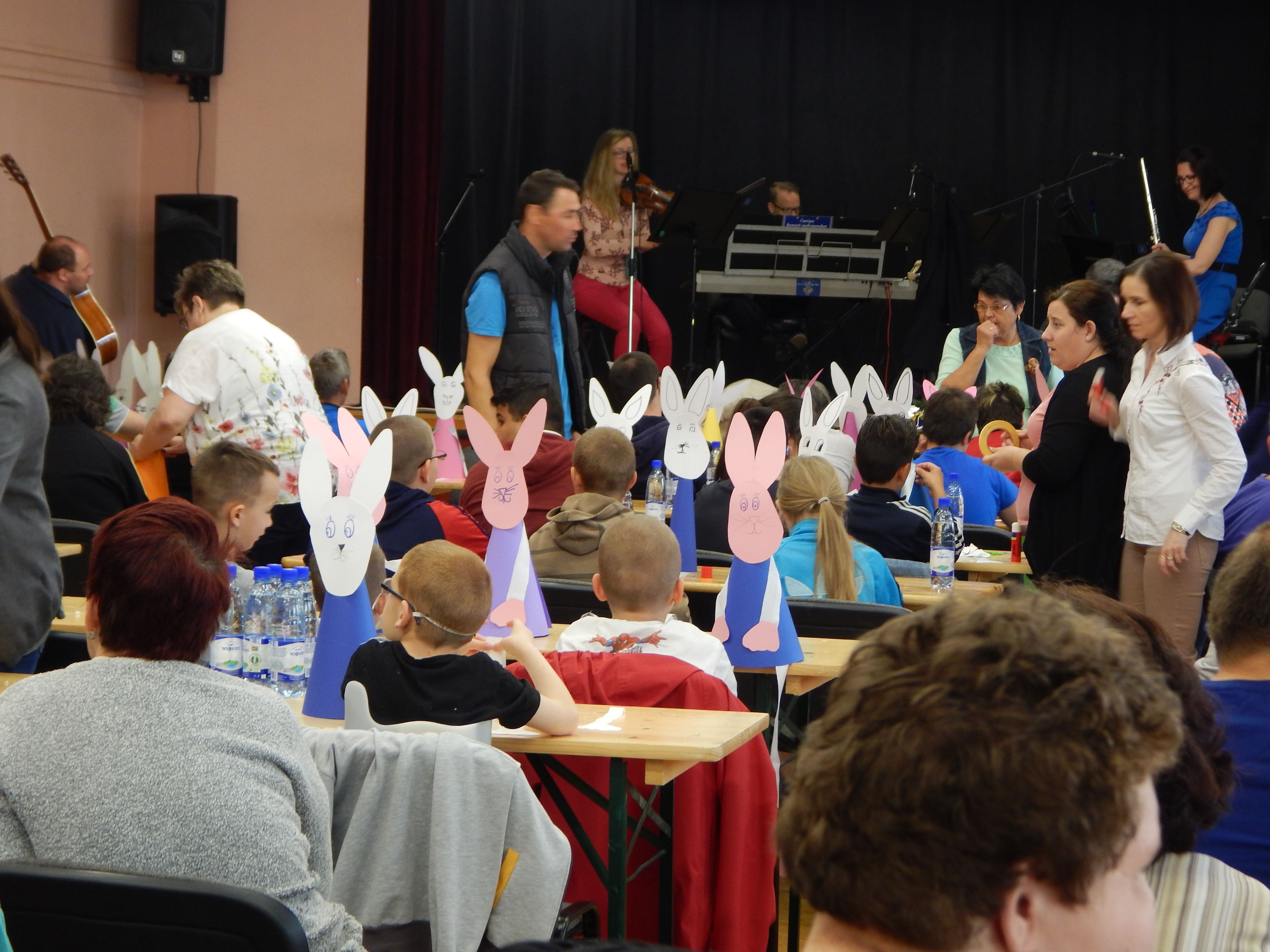 „Ünnepeink Dalban Táncban” címmel a győri József Attila Művelődési Ház színháztermében tartotta az év első mesekoncertjét fiatal tagjai számára az ÉFOÉSZ Értelmileg Sérültek és Segítőik Győr-Moson-Sopron Megyei Egyesülete (É.S.S.E.). Az egyesület tavaly 4 alkalommal tartott a gyerekek számára kézműves foglalkozással egybekötött mesekoncertet, és a nagy siker miatt idén is szerették volna megvalósítani a sérültséggel élő fiatalok kérését, hogy újra komolyzenét hallgathassanak mesébe ágyazva. Az idei, tavaszi rendezvényen 130 fiatal vett részt, a koncert előtt ezúttal is kézműves foglalkozást tartottak a fiataloknak, melyen a húsvéti ünnepet és a hozzá kapcsolódó szokásokat elevenítették fel – minden résztvevő nyúl figurát készíthetett magának, amit haza is vihetett. A foglakozást gyógypedagógus vezette, aki bemutatta a különböző technikákat és az egyes munkafázisok elvégzésének helyes sorrendjét is megtanította a résztvevőknek. A gyerekeket, ha nehezen ment számukra a vágás vagy ragasztás, önkéntesek segítették a figurák elkészítésében. A közösség összetartását jelzi, hogy a sérült fiatalok ilyenkor egymásnak is segítenek, mert tudják, hogy kinek nem működik jól a keze, ki szorul egy kis odafigyelésre. A foglalkozás után a RADOFÓNIA együttes fiataljai új hangszereik bemutatásával köszöntötték a résztvevőket. Az együttest sérültséggel élő fiatalok alkotják, akik tanáraik segítségével Ulwila technikával tanulják meg a műveket. Az Ulwila egy színes kotta, ami a hangjegyeket helyettesíti, ennek segítségével, ők is tudnak zenélni, és mindig nagy sikert aratnak társaik körében. A nagykoncerten Farkas Árpád az „EURÓPA” Koncert Szalonegyüttes vezetője kalauzolta a résztvevő fiatalokat a komolyzenei művek között, hozzáértő pedagógusként mesélt a gyerekeknek, bevonva őket a zenélésbe, éneklésbe. A rendezvényen mindenki nagyon jól érezte magát.