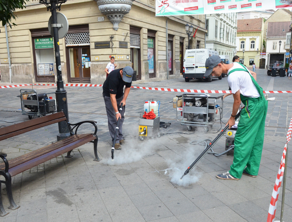 Kifejtette, bár az utcaseprés és utcatakarítás rendszeres, ezúttal speciális módszerrel, magasnyomású mosóval és vegyszerrel tisztítják meg négyzetméterről négyzetméterre a sétálóutcát.