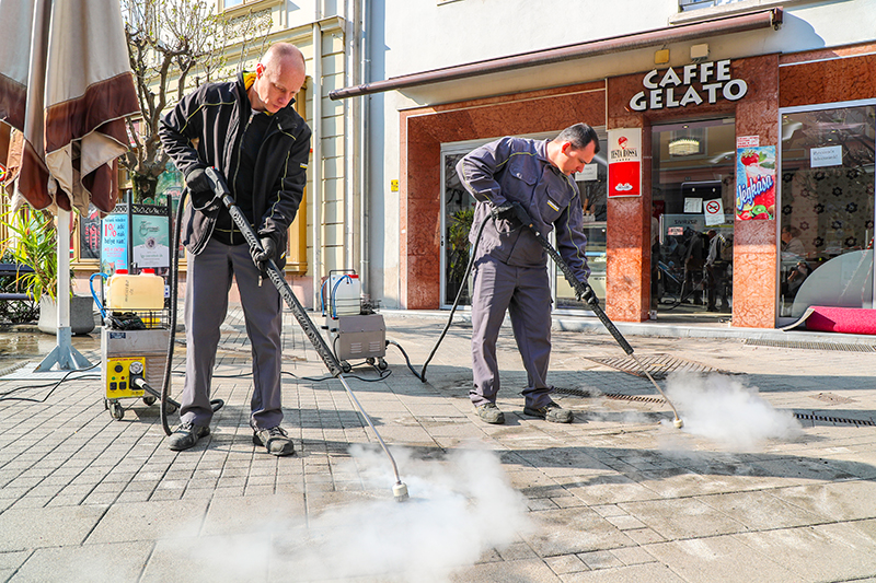 Az utca seprése, vizes és gépi tisztítása mindennapos, a téli rendezvények miatti nagy igénybevétel miatt azonban szükségessé vált a díszkő alaposabb takarítása.