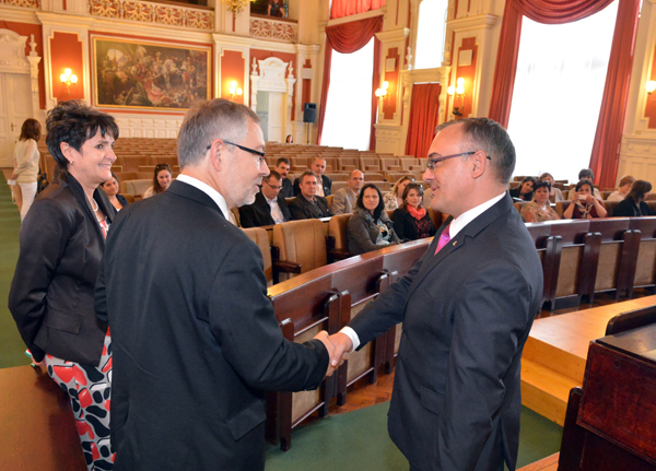 Az intézményvezetőket Borkai Zsolt fogadta a városházán, akinek a püspök és az iskolaigazgató is köszönetet mondott azért, hogy Kara Ákossal közösen országgyűlési képviselőként szorgalmazták és támogatták az épületegyüttes megújítását. A polgármester elmondta, Győrben számtalan érték található, a város törekvése, hogy ezeket megmutassa az egész országnak és a határon túlról érkezőknek. A számos új értéket teremtő beruházás mellett ezért folyik a Belváros és Újváros rehabilitációja is, amihez jól kapcsolódik az Insula Lutherana felújítása. Kiemelte, az élet számos területén tapasztalható, hogy a kormány a győri fejlesztési elképzelések mellé áll, ilyen a 2017-es Európai Ifjúsági Olimpiai Fesztivál létesítményeinek építése, ilyen a Multifunkcionális Csarnok beruházása, és ilyen az evangélikus épülettömb komplex felújítása is.