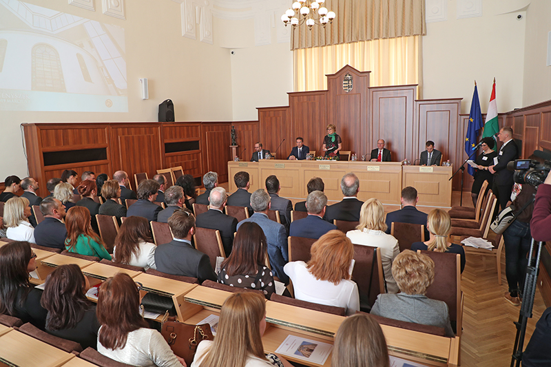 „A közigazgatási és munkaügyi pereket a magyar bíróságok fejezik be leghamarabb az Európai Bizottság eredménytáblája szerint” – közölte Handó Tünde, az Országos Bírósági Hivatal elnöke Győrben, ahol pénteken átadta a MTESZ szépen felújított székházában működő Győri Közigazgatási és Munkaügyi Bíróságot. Később itt kap majd helyet a közigazgatási törvényszék is.