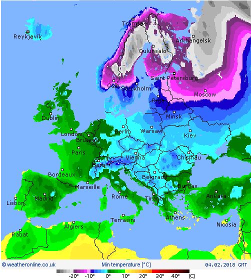 A WeatherOnline Meteorológiai Szolgálat hőmérséklet-előrejelzése vasárnap reggelre