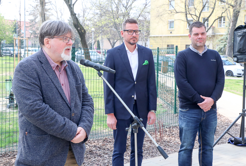 Dr. Dézsi Csaba András önkormányzati képviselő a lakók nevében mondott köszönetet a fejlesztésért. Kiemelte, a körzetben három nagy park is található, a Malom Liget mellett a Kálvária úti és a Bem tér is, s az elmúlt időszakban mindhárom jelentős megújuláson ment keresztül. Ezek a parkok egyszerre nyújtanak esztétikai élményt, pihenést és sportolási lehetőséget az itt élőknek, míg növényzete révén a város tüdejeként is funkcionálnak.