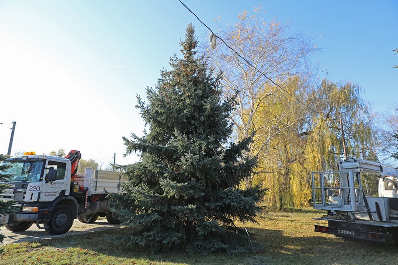 A város karácsonyfája november 26-án érkezik a Széchenyi térre, ahol a szakemberek a tér fejlesztésekor direkt erre a célra kialakított tartóba állítják a nagyméretű, formás fenyőfát.