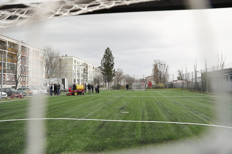 Az egykori rekortán borítású, elhasználódott pálya helyén egy vadonatúj, műfüves borítású pálya jött létre, amelyet díjmentesen használhatnak a Gyárvárosban élők és a környék iskolásai.