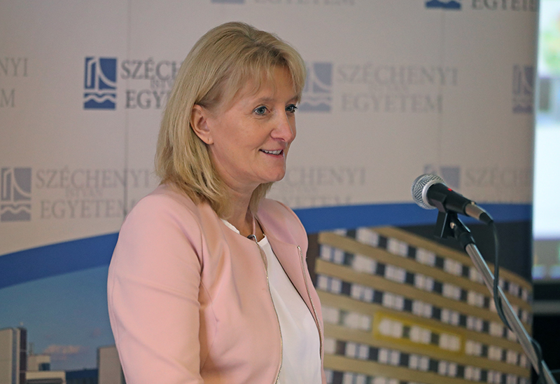 Ablonczyné Prof. Dr. Mihályka Lívia zárszavában arra hívta fel a figyelmet, hogy a projekt során az egyetemi karok, osztályok, irodák munkatársai közötti aktív, kiváló együttműködés is hozzájárul az egyetem stratégiai céljainak hallgatóközpontú megvalósulásához.