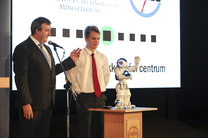 A szakképzési tanévet Palkovics László közösen nyitotta meg a győri Lukács Iskola Nao névre hallgató humanoid robotjával.