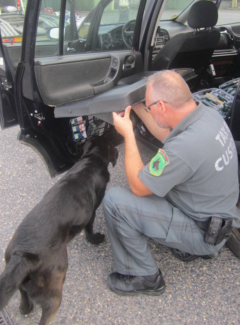 A felderítést cigarettakereső kutyák is segítették. A NAV munkatársai az adózatlan jövedéki terméket és az átalakított járművet lefoglalták, jövedéki eljárást indítottak és költségvetési csalás gyanúja miatt feljelentést tettek. A pénzügyőrök Hegyeshalom közelében ellenőriztek egy román kisbuszt, amiben kilencen utaztak. A kisbusz utánfutóján személygépkocsit szállítottak. Django és Jenny, a NAV szolgálati kutyái az utánfutónál jeleztek gazdáiknak, ezért az Opelt tüzetesen átvizsgálták a NAV munkatársai.