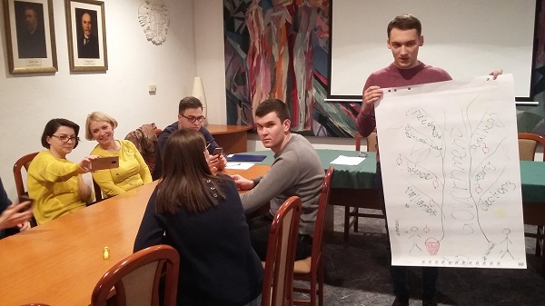 Sokféle vélemény fogalmazódik meg, a teammunkák eredménye pedig többek közt egy-egy inspiratív rajz a flipchartokon. Ezeket dr. Smuk Péter emlékként az irodájában őrzi. A demokrácia fájáról például, aminek szerteágazó gyökérzetét a polgárok, civil közösségek alkotják. Lombozatát pedig olyan fontos ágak, mint a szociális háló, a biztonság, a szabad választások, az igazságszolgáltatás, a mindenkire vonatkozó szabályok és törvények, a független sajtó vagy a népképviselet. Ugyanígy szépen összefoglalták a hallgatók az Európai Unió értékeit is.