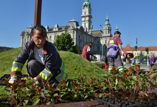 Városszerte folyik a virágosítás, a virágágyakba előre megtervezett kompozíciók kerülnek.