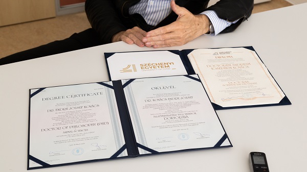 Kovács Endrét hazahúzta a szíve Magyarországra. Testvérei, barátai itt élnek, de nemcsak a családdal, hanem Alma Materével is folyamatosan tartotta a kapcsolatot. Idő közben az Állatorvostudományi Egyetem vendégelőadója lett, német nyelven tart órákat, vezet gyakorlatokat. Ezért is került képbe a PhD-képzés, és kollégái a mosonmagyaróvári doktori iskolát ajánlották. Élménydús három év kötötte a Lajta-parti városhoz. Azt, hogy az állatorvosi egyetemet milyen kiváló kapcsolat fűzi az óvári gazdász karhoz, mi sem bizonyítja jobban, mint hogy az egyik témavezetője Prof. Dr. Bali Papp Ágnes volt Óvárról, másik témavezetője pedig dr. Gáspárdy András a fővárosból.