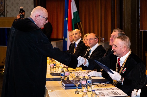 „Magnifice Domine Rector! Tisztelt nyilvános szenátusi ülés! Mint a Mezőgazdaság- és Élelemiszertudományi Kar dékánja bejelentem, hogy dr. Kovács Endre József, konzulensei dr. Bali Papp Ágnes egyetemi tanár és dr. Gáspárdy András egyetemi docens, megfelelt azoknak a feltételeknek, melyekhez a Széchenyi István Egyetem doktori szabályzata a PhD doktori fokozat odaítélését köti. Ezért javaslom, a nevezett fogadalomtétele után, részére a PhD doktorátus adományozásáról szóló oklevél kiadását” – jelentette Dr. Szalka Éva, a gazdász kar dékánja.