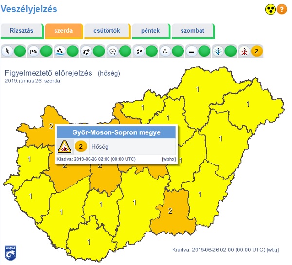 Az egész országra figyelmeztetés érvényes - megyénkre másodfokú.