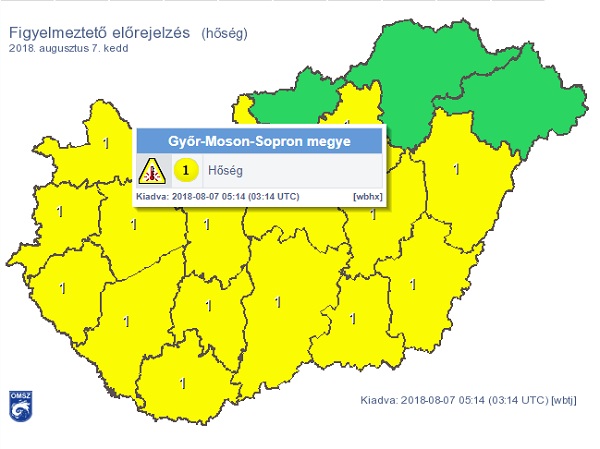 Országszerte továbbra is tartós hőségre figyelmeztet az Országos Meteorológiai Szolgálat.