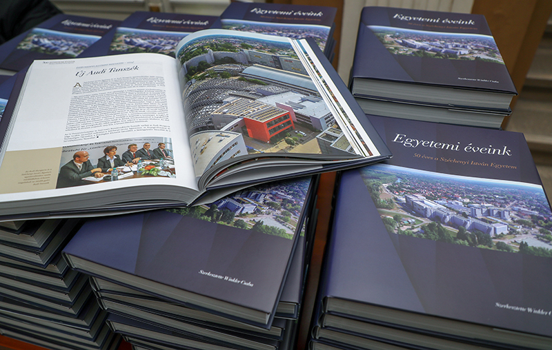 A Széchenyi István Egyetem ötven évéről szóló kiadványt a Városházán mutatták be szerdán, ahol a fél évszázados sikertörténet kapcsán díjakat is átadtak azoknak, akik sokat tettek az intézmény fejlődéséért.