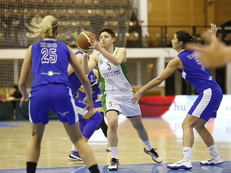 A tét nagy volt, hiszen a közvetlen rivális érkezett Győrbe, egy győzelemmel pedig megerősíthették volna a második helyüket a tabellán Völgyi Péter tanítványai. Ehhez képest kicsit kapkodva, több hibával kezdtek a győri lányok, percekig nem tudtak kosarat szerezni. A negyed közepére így három pontos előnye volt a PEAC-nak. Lépéselőnyben a folytatásban is a pécsiek voltak, így a játékrész végére 14-19-re vezetett a vendég gárda. A második etapra összeszedték magukat a zöld-fehér lányok, előbb kiegyenlítettek 19-19, majd a vezetést is átvették. Vajda, majd Radocaj kosarának köszönhetően sikerült is némileg meglépni a vendégektől. A nagyszünetre 38-33-as hazai vezetéssel vonultak a felek.