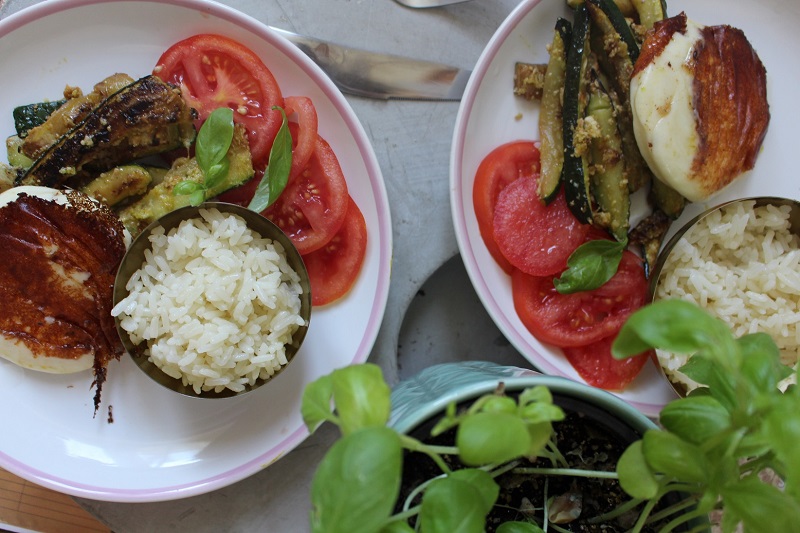 A cukkini és bármilyen zöldség a serpenyőben, sütőben sütve parmezánnal költséghatékony, bármikor fogyasztható, egészséges és mindenki szereti. Az, hogy mit halmozunk még a tányérra mellé, csupán rajtunk áll. Én egy mostanság divatos, süthető mozzarellát készítettem kevés olívaolajon, mézen, rizst főztem a szokásos egy fokhagymagerezddel és friss paradicsommal tálaltam. Egészen könnyű ebéd volt, ezért a férfiaknak dupla adag vagy némi sült sonka kiegészítés szükséges a tányérra.