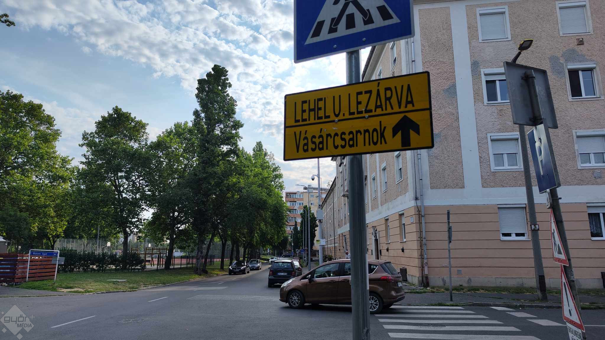 A helyszínen kihelyezett tájékoztató szerint július 10. és 15. között lesz lezárva a Lehel utca, reggel 8 és 16:30 között.