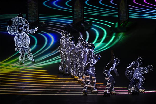 A dél-koreai popzene egyik sztárja, CL extravagáns megjelenésű minikoncertje után kezdődött a hivatalos rész: a görög lobogó felvonása, valamint a görög és az olimpiai himnusz után Phjongcshang polgármestere átnyújtotta a levont ötkarikás zászlót Thomas Bachnak, majd a NOB-elnök továbbadta azt Peking első emberének. Ezt követően nyolcperces műsorban bemutatkozott a kínai főváros, a 2022-es téli játékok házigazdája.