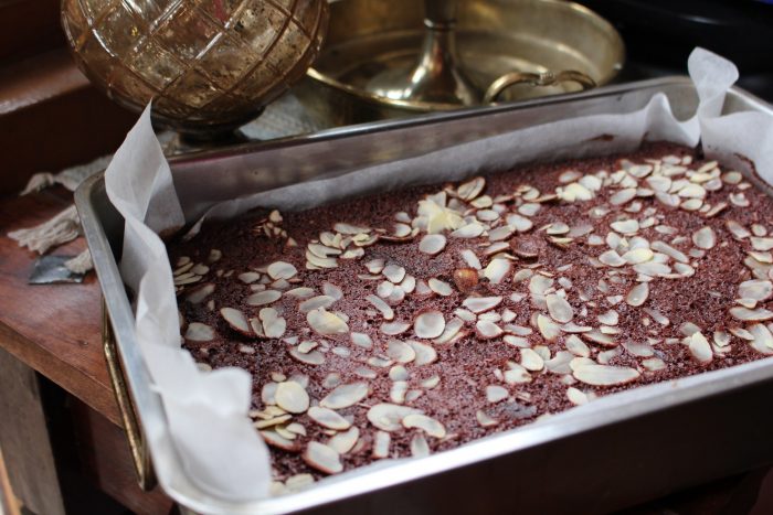 - Sütőpapírral bélelt 20x 25-ös tepsibe beletöltöm és 170 fokos sütőben 35 percig sütöm.