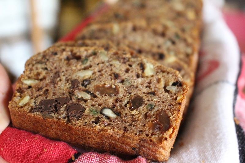 3. A sütőformát sütőpapírral kibélelem vagy kivajazom, ha nem szilikonforma éppen. A sütőt előmelegítem 100 fokra és beteszem a formába töltött masszát. Ezen a 100 fokon sütöm 15 percig, majd megemelem 180 fokra és újabb 20 percig sütöm. Tálalás előtt hagyom a formában 10 percig, aztán kiborítom és szeletelem vagy lekvárral, akár porcukorral tálalom. Napokig eláll és minden napszakban jól jön, mert tartalmas táplálék.