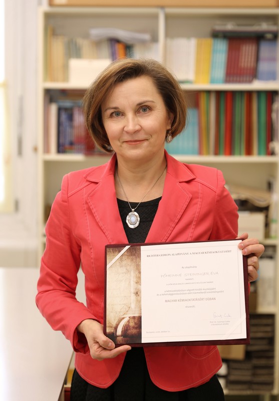 A Richter Gedeon Alapítvány Magyar Kémiaoktatásért díját idén négy kiváló kémiatanár vehette át, köztük a Révai Miklós Gimnázium tanárnője, Pőheimné Steininger Éva, aki közel harmincéves pedagógusi pályafutása alatt sok száz gyermekkel ismertette és szerettette meg a kémia varázslatos tudományát.