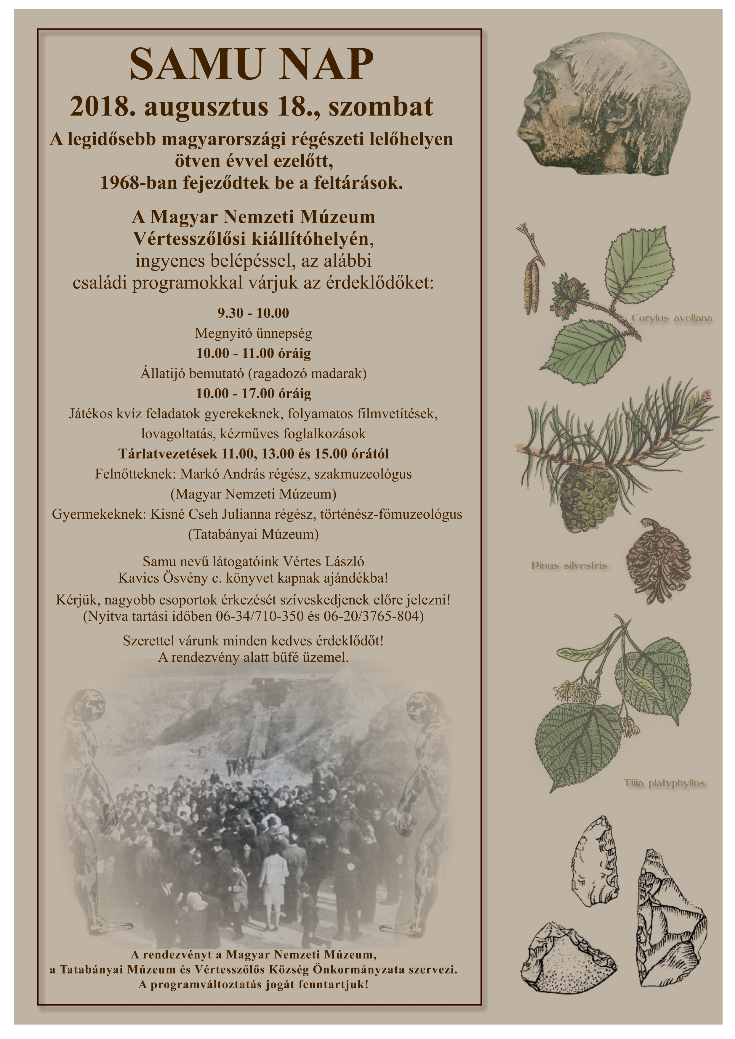 Az idei Samu-nap két okból is különleges: a kiállítás 50. születésnapjára és a leletegyüttes kutatójának, Vértes Lászlónak 50 évvel ezelőtt bekövetkező halálára egyaránt megemlékeznek.