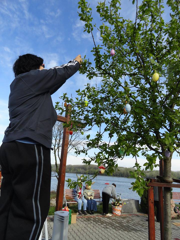 Sőt, az egyik fára is jutott a tojásdíszekből, amely így messziről hirdeti: Gönyűn már nagyon várják a húsvétot, na meg persze a locsolókat. Ezeket a tojásokat viszont ne vigye el senki sem, sőt, aki szeretné, maga is akaszthat a fára hímestojás díszt, így téve még szebbé a környezetet és az ünnepet.