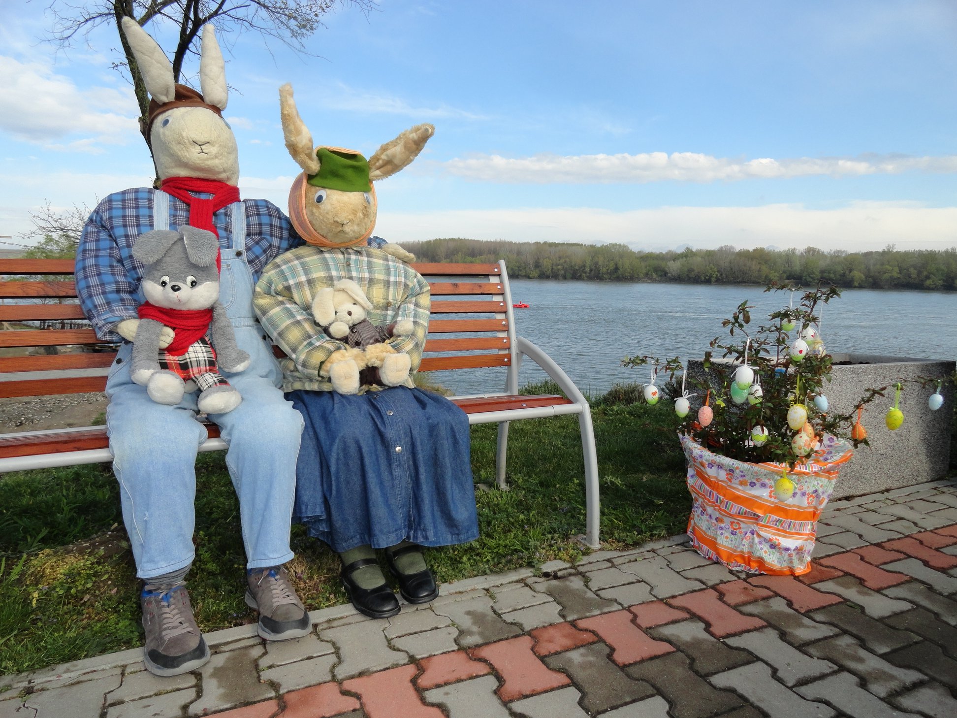 A gönyűi vöröskeresztesek úgy döntöttek, hogy egy egész nyuszicsaládot hívnak meg a Háry Dezső térre! A kedves invitálásnak ki tudna nemet mondani?! Így a látogatókat a szépen felújított környezetben Nyúl Anyó, Nyúl Apó és a kisnyulak várják egy kis pihenésre, kikapcsolódásra és az ünnepre hangolódásra. A helyszín egyébként családi fotók készítésére is tökéletes, hiszen a háttérben jól látszik a Duna.