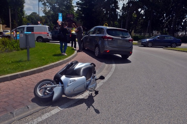 Az ütközés következtében felborult kétkerekű vezetője megsérült, ezért őt a mentők kórházba vitték.