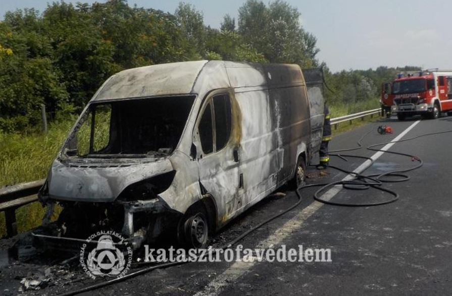 Kedden kora délután kigyulladt egy furgon az M1-es autópálya Hegyeshalom felé vezető oldalán, Lébény térségében, a 147. kilométerszelvénynél. Teljes terjedelmében égett a száraz állateledelt szállító jármű, a tüzet a lébényi hivatásos és önkéntes tűzoltók oltották el. A tűzeset során nem sérült meg senki. Az oltás idejére lezárták az M1-es sztráda érintett szakaszát.