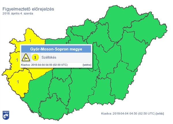 A várt legerősebb széllökések meghaladhatják a 70 km/h-t.