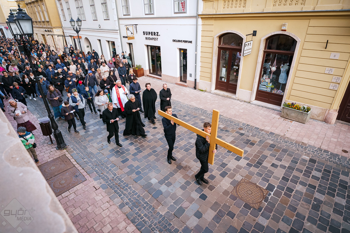 Győrben nagypénteken, a szokásoknak megfelelően városi keresztutat tartottak, az eseményen nagyon sokan vettek részt, hogy közösen imádkozva emlékezzenek.