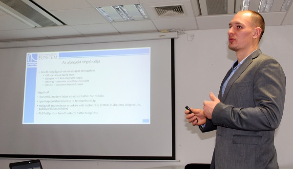 Pup Dániel a hallgatói versenycsapatokkal kapcsolatos projektelemeket ismertette.