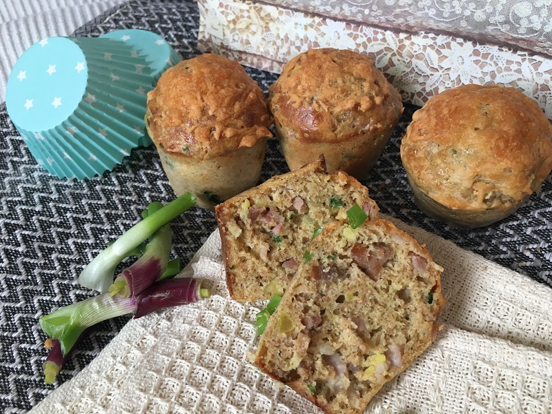 Egészen távol állnak tőlem a muffinok, mivel kissé töménynek érzem őket, de ebben közrejátszik a méretük, küllemük, formájuk is. Mindennek ellenére igen csinosak és gusztusosak, éppen ezért néha készül az én konyhámban is. A csupa csokoládés, túrós- málnás mellett szeretem a sós variációt is, ezért húsvétra, nagy mennyiségben praktikusnak gondoltam egy gazdag, tartalmas sós muffint készíteni. Ebben az időszakban sokunk hűtőjében sorakozika füstölt sonka, a zsenge újhagyma és mindezt, ha sok sajttal keverjük: isteni. Megkíméltem magunkat a száradt muffin érzettől, ezért főtt krumplit kevertem a tésztába és olívaolajjal dúsítottam. Mondhatnám, hogy sajnos, de valójában örülök, hogy csupán 12 órát voltak jelen nálunk a muffinok, mert mind a 12 darab el is fogyott. Jöhet az újabb tepsi a hétvégére!
