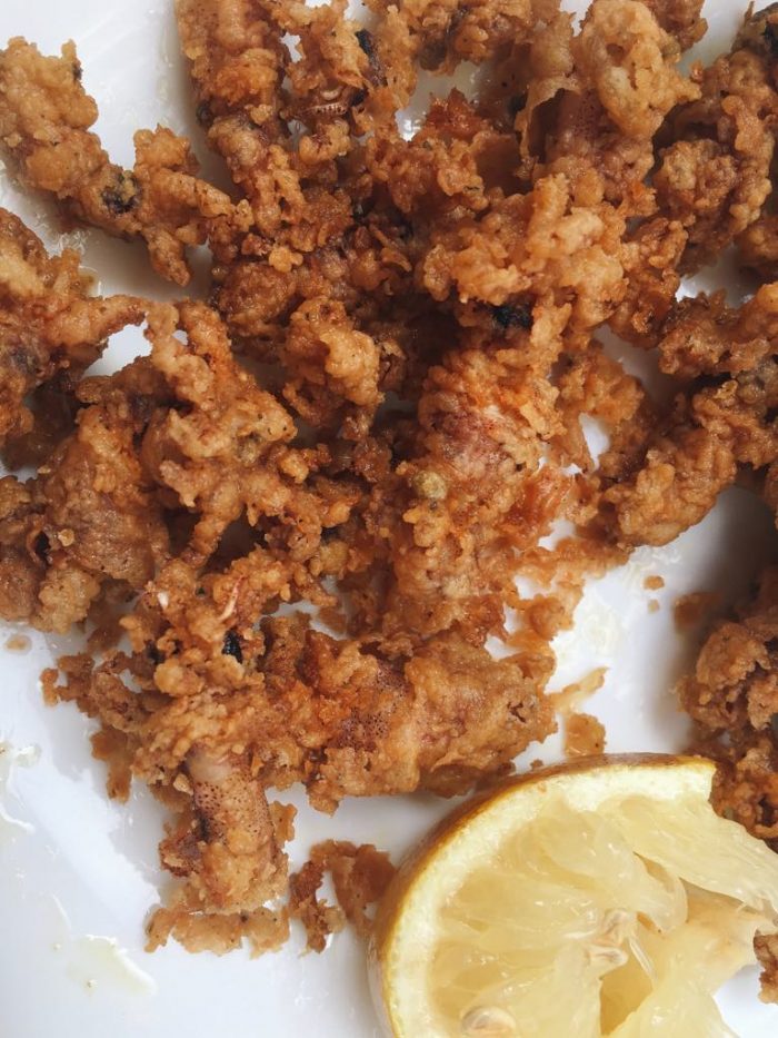 Éppen úgy, ahogy ezt a híg sörös-tejes tésztában sült ropogós bébi polipokat. Elég sótlan, de a citrom adja meg ennek is az ízét, sósságát. Én otthon gyakran használom ezt a módszert, akár pici halfilé falatokra, csirkekockákra vagy csupán egy gomolya sajtcsíkra. Nem szívja meg magát olajjal és nem kell sem panírozni, sem sokáig sütni!