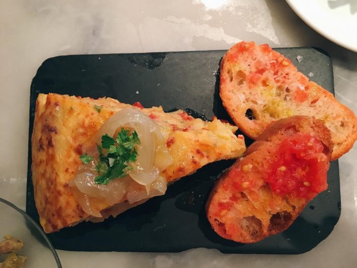 A tortillát magam is készítem, aminek receptjét megtaláljátok itt a rovatban, azonban most lestem el, mitől is lehet még finomabb. A tortillának nagyon vastagnak kell lennie, hiszen a belsejének krémesnek kell maradnia a tojástól. Friss tojás, új burgonya, sült chorizo ebben is, majd sok pirított hagyma. A tálalás pedig enyhén ecetes-cukros hagymával dukál!
