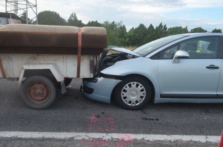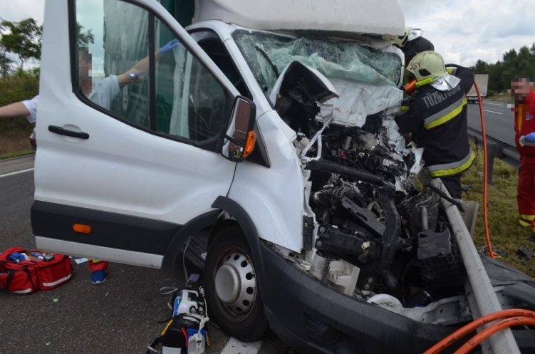 Személyi sérüléssel járó közúti közlekedési baleset történt 2018. június 28-án 10 óra körül az M1-es autópályán. Egy 44 éves férfi az általa vezetett tehergépkocsival a 123+328 kilométerszelvényénél közlekedett Hegyeshalom irányába. Halása során – eddig tisztázatlan okok és körülmények között – a külső forgalmi sávban az előtte közlekedő járműszerelvény hátsó résznek ütközött. A baleset következtében a járműszerelvény a leálló sávon állt meg, míg a tehergépkocsi a belső szalagkorlátnak ütközött. A balesetben a tehergépkocsi sofőrje megsérült, őt a mentők kórházba vitték.
