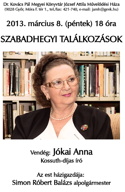 A Szabadhegyi találkozások következő előadásán Jókai Anna Kossuth-díjas íróval találkozhatnak, március 8-án.