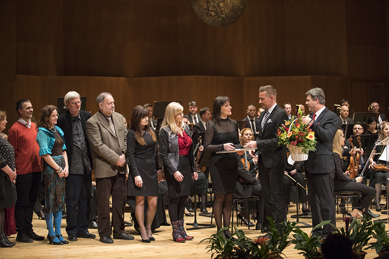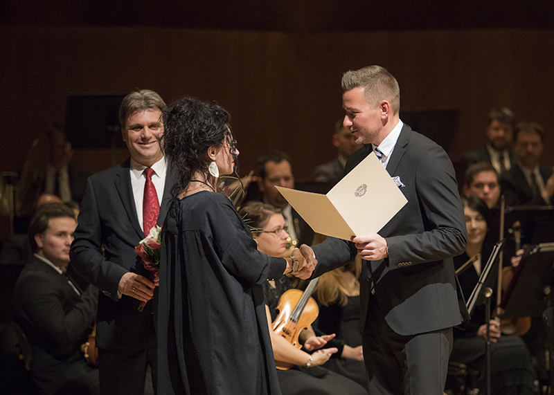 A „Győr Művészetéért” és a „Győr Közművelődéséért díj” díszokleveleit, valamint a díjakkal járó Hefter László és Hefter Brúnó üvegművészek alkotta emléktárgyakat Radnóti Ákos és Rózsavölgyi László az önkormányzat Oktatási, Kulturális, Sport és Turisztikai Bizottságának elnöke adta át.