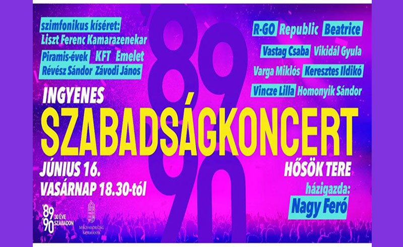 Az ingyenes Szabadságkoncert június 16-án 20 órakor kezdődik. Szabó László, a koncert rendezője elmondta: az előadókat 40 fős szimfonikus zenekar és 30 fős kórus kíséri, a színpad 34 méter széles lesz, minden zenekar három-három dalt fog előadni. A koncert elején a Magyar Honvédség Gripen vadászgépei húznak át a Hősök tere felett.