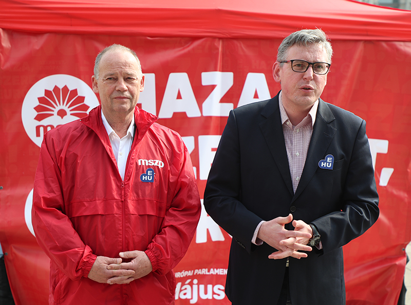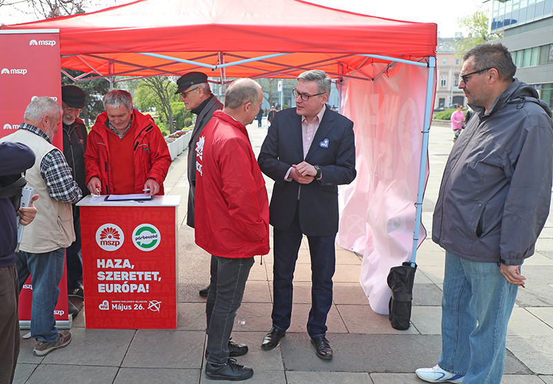 A megyeháza előtti sátorban tartott sajtótájékoztatóra Kovács László, volt uniós biztos, egykori külügyminiszter is ígérkezett, de lemondta a részvételt, mert elromlott az autója. Így aztán a másik vendég, Szanyi Tibor beszélt a választási programjukról. Kiemelte: bár mindenki az összefogás szükségességét hangoztatja, az MSZP az egyetlen párt, mely a Párbeszéddel közös listát indít a szövetségi politika jegyében. Együttműködik velük több civil csoport is, Szanyi Tibor közülük a V21-es formációt említette, melyet főleg Balázs Péter külpolitikus neve fémjelez.