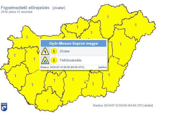 Zivatarokra és felhőszakadásra figyelmeztetnek megyénkben is!