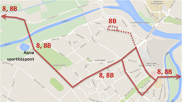 A győri önkormányzat döntése révén változik a 8-as járat útvonala, így tömegközlekedéssel közvetlenül is elérhetővé válik az Aqua Sportközpont.