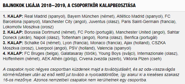 A selejtezők zárultával csütörtök este 18 órától (tv: M4 Sport, Eurosport1) a monacói Grimaldi Forumban tartják a Bajnokok Ligája csoportkörének sorsolását.