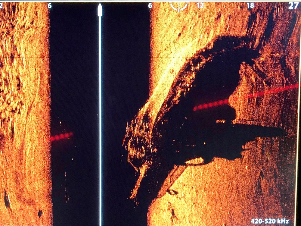 A képen látszik, hogy a hajóroncs az oldalán fekszik. A roncs legmagasabb pontja a vízszint alatt 2 méterrel van, a legmélyebb pontja 7,5 méterre van. A fehér kishajóikon és a folytonos fehér vonal a folyó északi irányát jelöli.