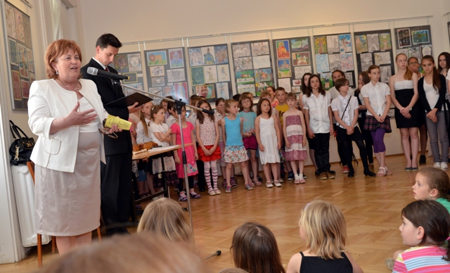 Szilbekné Cseh Györgyi több pedagógus munkáját is név szerint megköszönte, s kiemelte Lappints Csaba rajztanár érdemeit a diákok alkotókészségeinek fejlesztésében, s a tárlat megvalósulásában.
