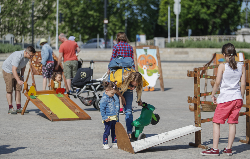 Orgona, gyöngyvirág, bodza és számos tavaszi virág illat lengi be a várost ezekben a napokban, így volt ez a Dunakapu téren is. Nem csupán a virágok illata teremtett kellemes hangulatot, hanem a 10 órakor kezdődő Rosta Géza koncertje is, amelyet a gyerekek éneke, nevetése, tapsa kísért.