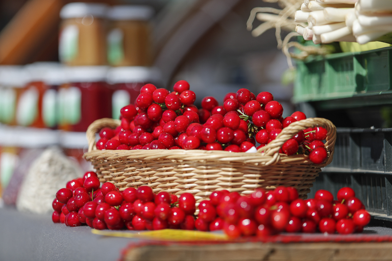 Friss árut csak kevés helyen találtunk, medvehagyma, új hagyma, retek, fejessaláta és cseresznye – volt a kínálat. Tavalyi alma, krumpli, hagyma, sárgarépa – amilyen zöldséget még beszerezhettünk.
